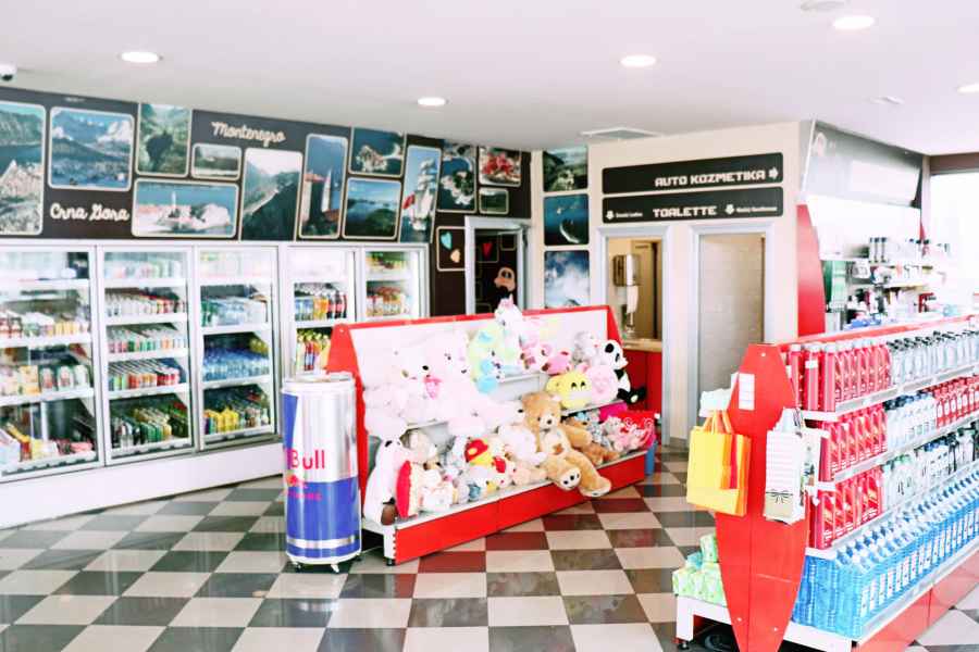 Naša prodavnica je opremljenja širokim asortimanom koji garantuje da ćete pronaći sve što vam je neophodno! Od maziva, ulja, sijalica i ostalog pratećeg materijala za vaš automobil, kamion ili motocikl, preko osvježavajućih pića, grickalica i slatkiša za vas!